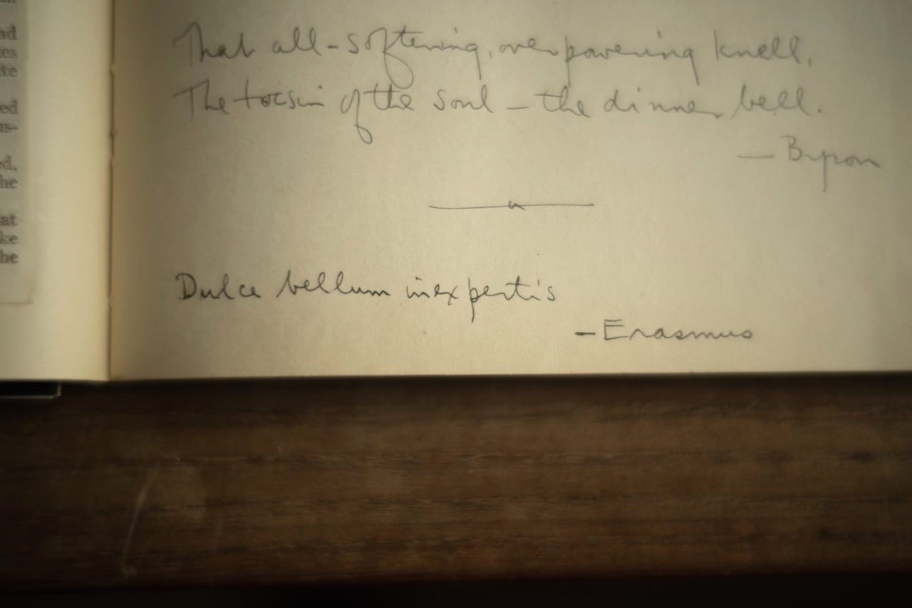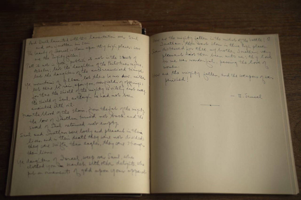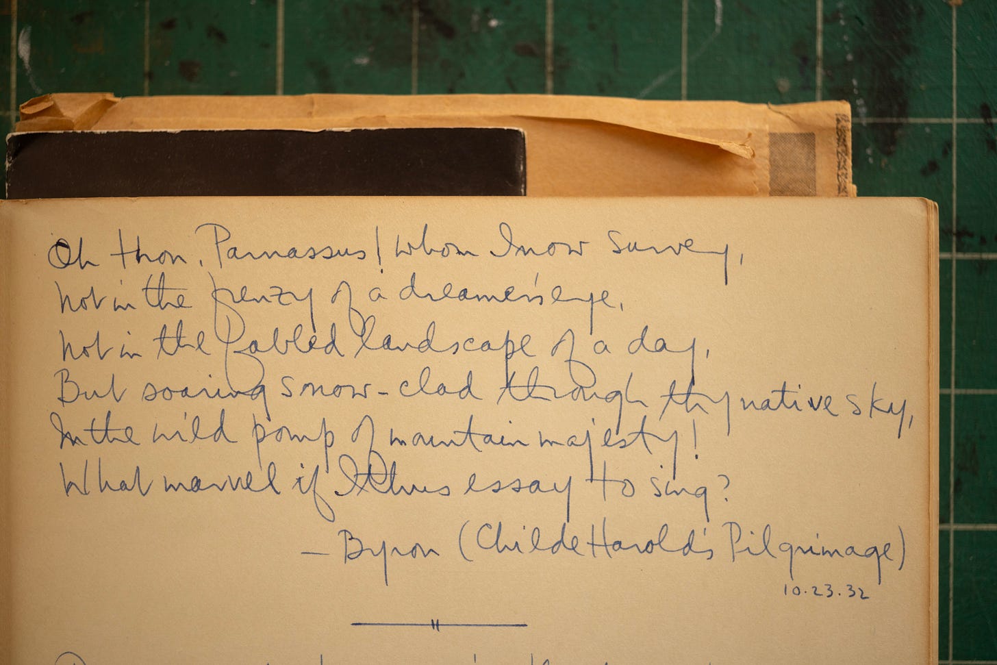 Years later, I found Grandpa’s journal among my grandmother Rosalia’s items. The first entry is from October 23rd, 1932. An excerpt from Childe Harold’s Pilgrimage by Byron, which is an appreciation of the Greek muses of artistic and scientific inspiration. Abraham was a believer in a higher purpose in life. He celebrated humanity, artistic and scientific achievements, and peace. It must have taken him years to make this book, clearly for himself - not others.